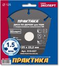 Диск по дереву с твердосплавным зерном ПРАКТИКА 125 х 22 мм для УШМ (910-027)