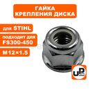 Гайка крепления диска UNITED PARTS M12×1.5 (левая резьба) для кусторезов STIHL FS300-450 (аналог 41196427600)