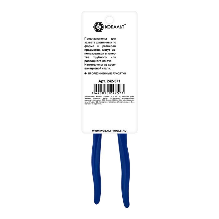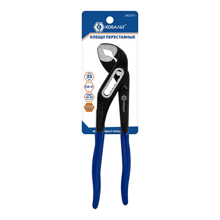 Клещи переставные КОБАЛЬТ 250 мм, максимальный захват 35 мм, CR-V, подвес (242-571) - цена, фото, технические характеристики