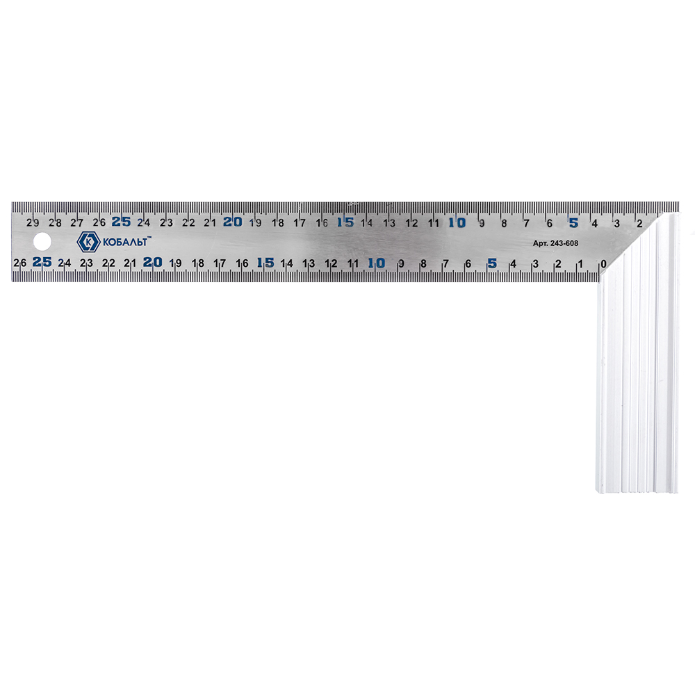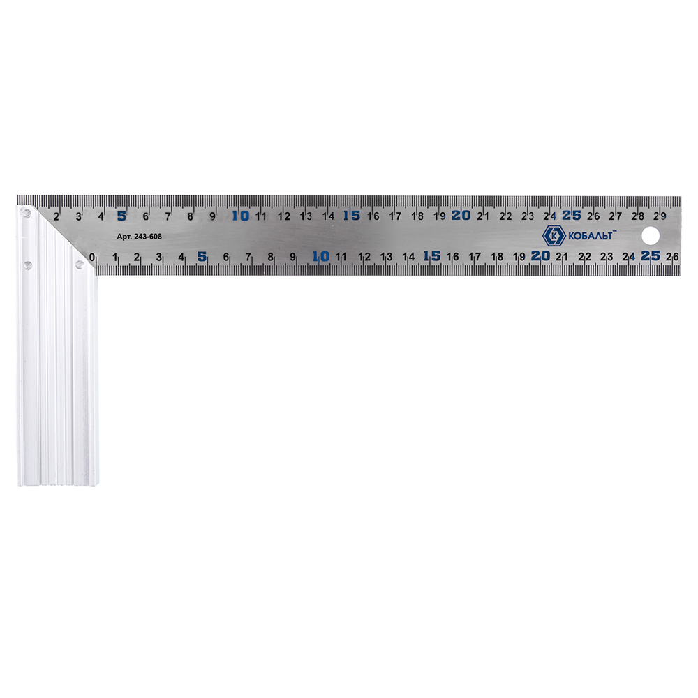 Угольник КОБАЛЬТ столярный 300 мм, нерж.сталь , алюминиевое основание (243-608) - цена, фото, технические характеристики
