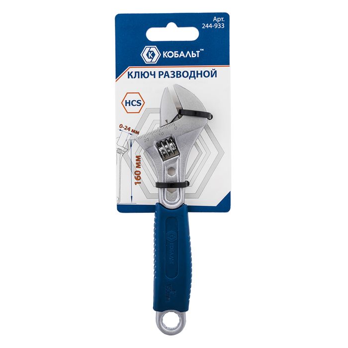 Ключ разводной с увеличенным хватом КОБАЛЬТ 160 мм, ширина захвата 24 мм, двухкомпонентная рукоятка, подвес (244-933) - цена, фото, технические характеристики