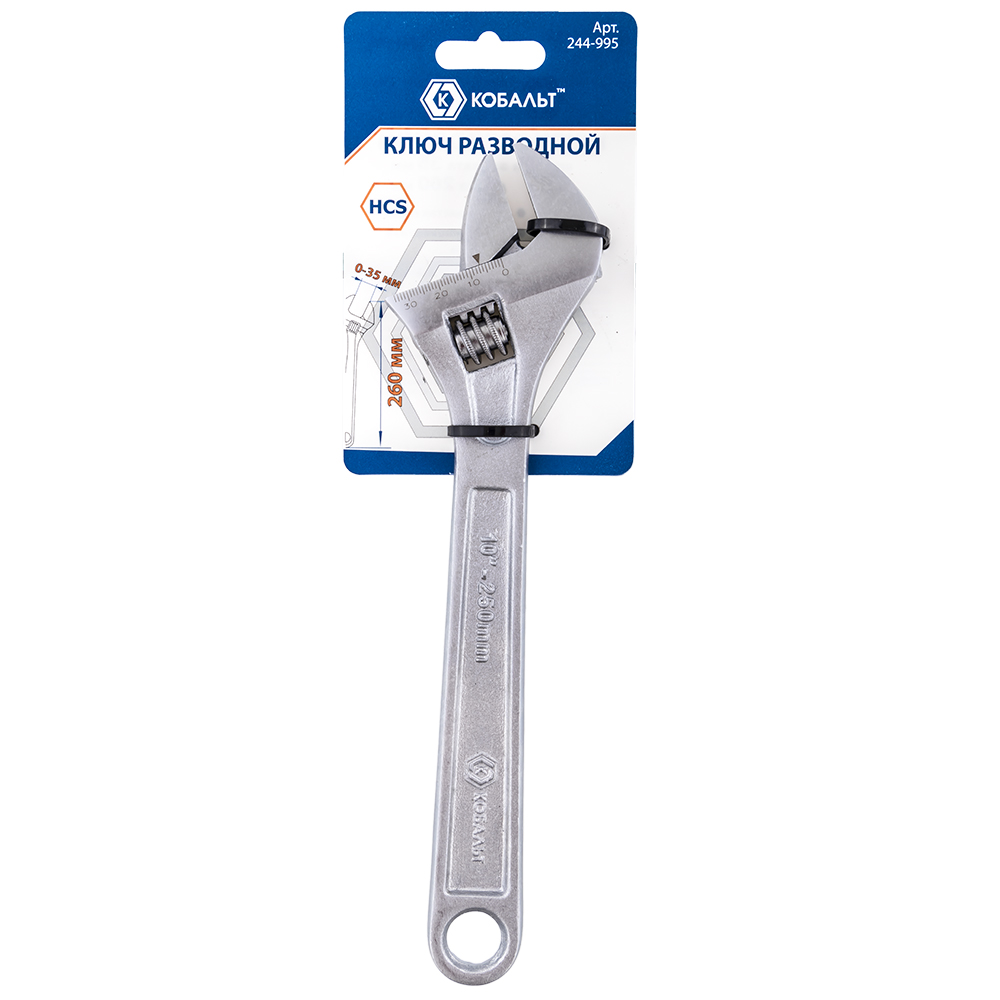 Ключ разводной с увеличенным хватом КОБАЛЬТ 260 мм, ширина захвата 35 мм, подвес (244-995) - цена, фото, технические характеристики