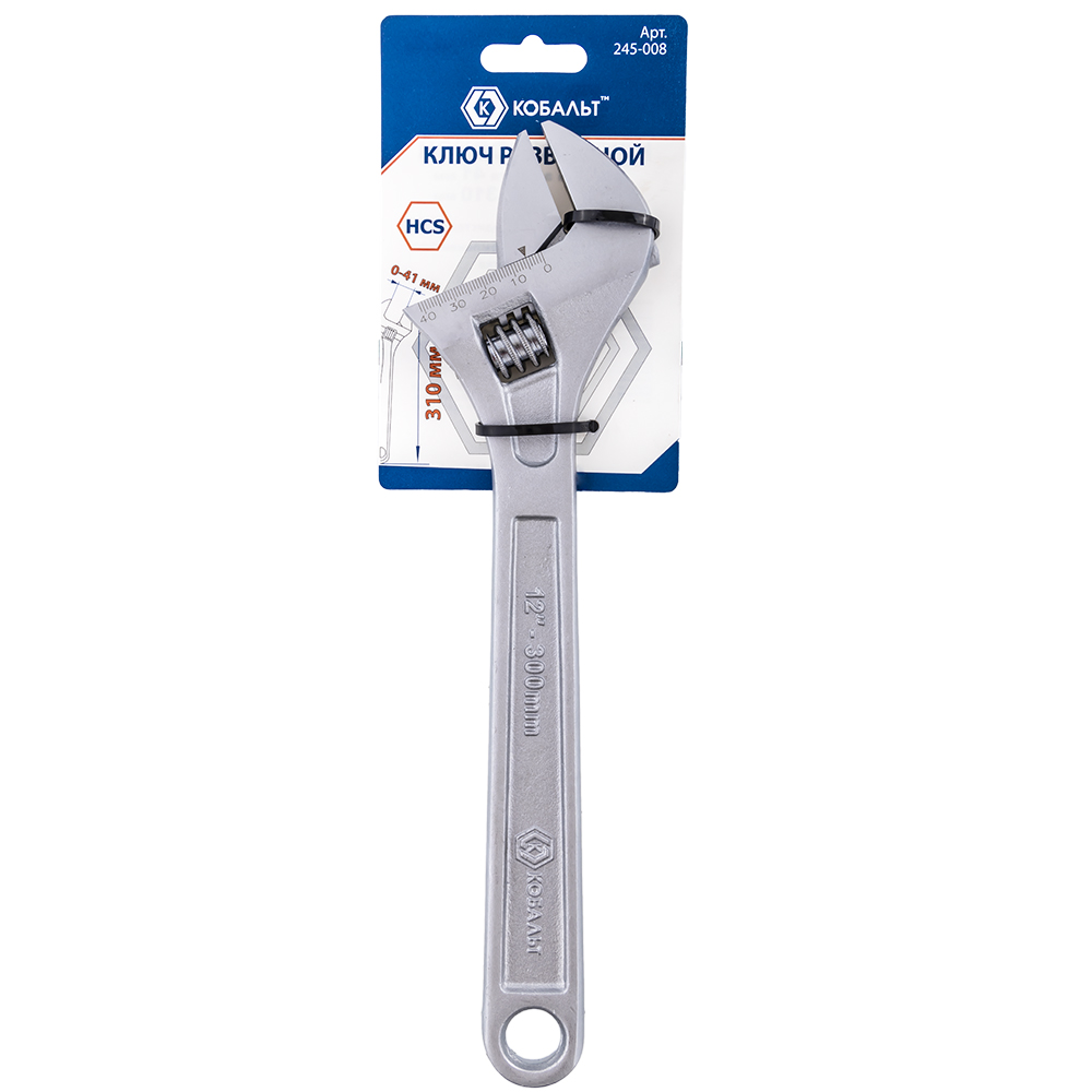 Ключ разводной с увеличенным хватом КОБАЛЬТ 310 мм, ширина захвата 41 мм, подвес (245-008) - цена, фото, технические характеристики