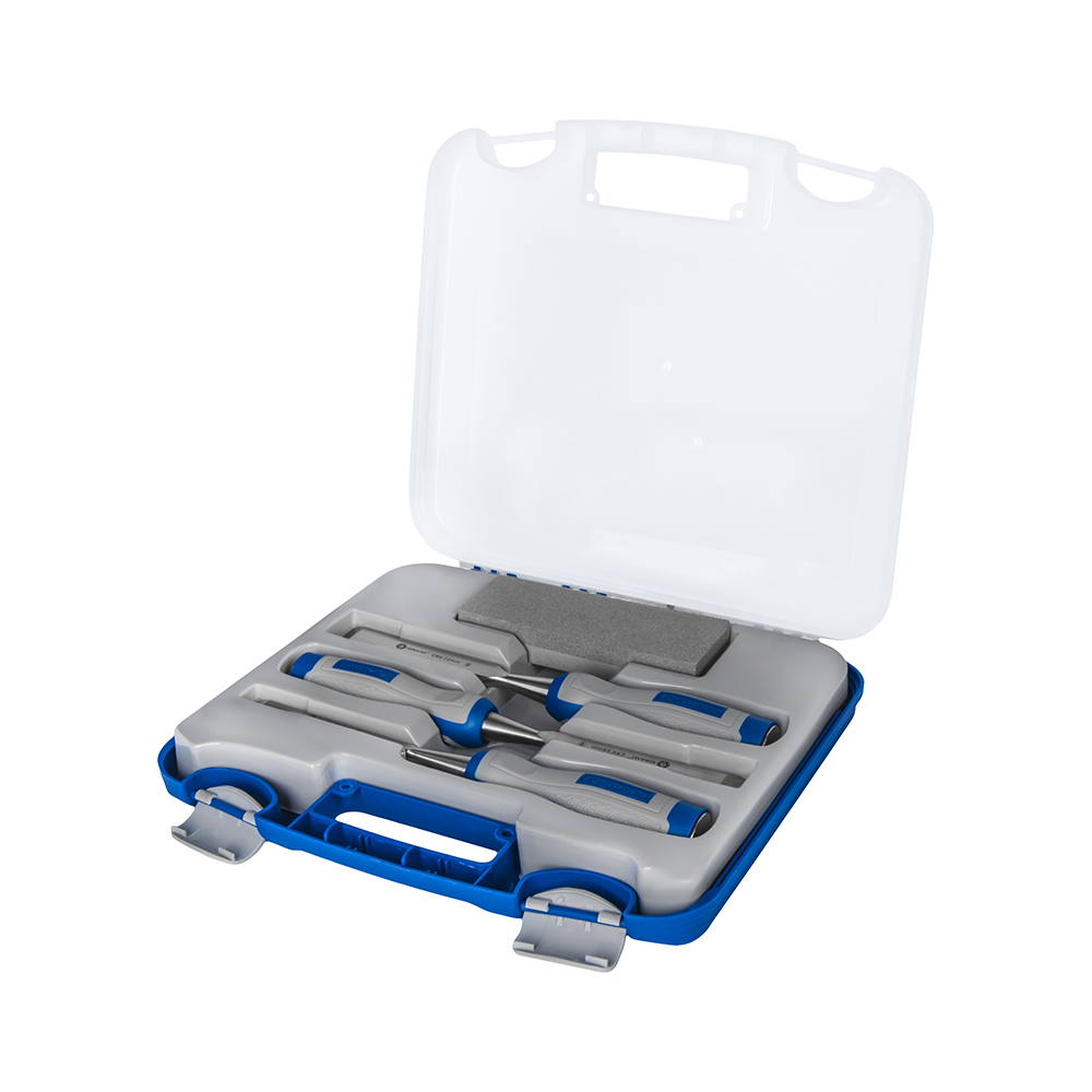 Набор стамесок КОБАЛЬТ плоских: 8, 16, 22 х 140 мм, CR-V, двухкомпонентная рукоятка, точильный камень, 3 ШТ., кейс (245-688) - цена, фото, технические характеристики