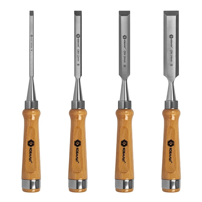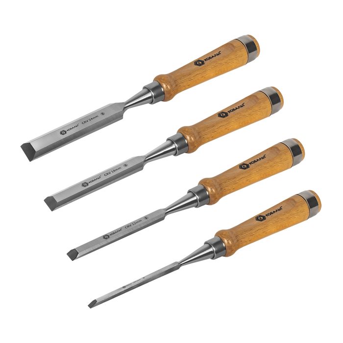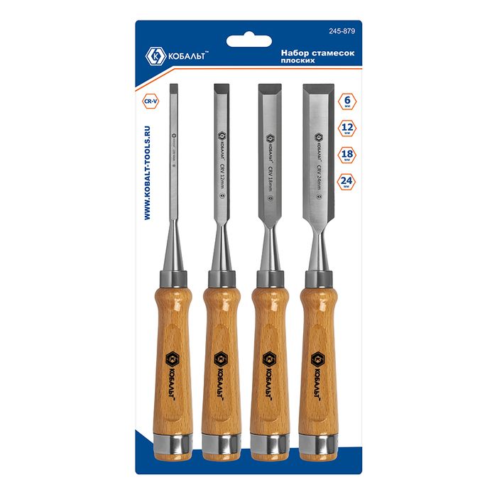 Набор стамесок КОБАЛЬТ плоских: 6, 12, 18, 24 х 140 мм, CR-V, деревянная рукоятка, 4 ШТ., блистер (245-879) - цена, фото, технические характеристики