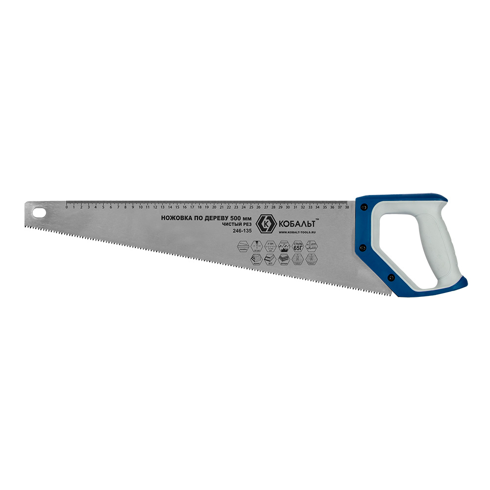 Ножовка по дереву КОБАЛЬТ чистый рез, 500 мм, шаг 3.5 мм (7TPI), закаленные зубья, 3D-заточка, 2-х компонентная рукоятка (246-135) - цена, фото, технические характеристики
