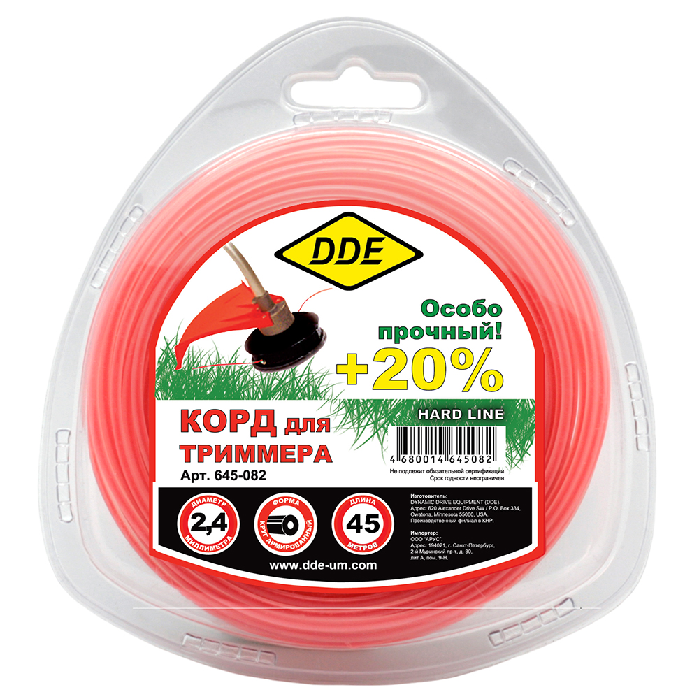 Корд триммерный DDE "Hard line" (круг армированный, диаметр 2,4 мм, длина 45 м) - цена, фото, технические характеристики