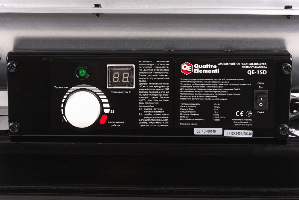 Нагреватель воздуха дизельный прямого нагрева QUATTRO ELEMENTI QE-15D (15кВт, 205 м.куб/ч, бак 20л, 1,3л/ч, 15,7кг) (772-326)