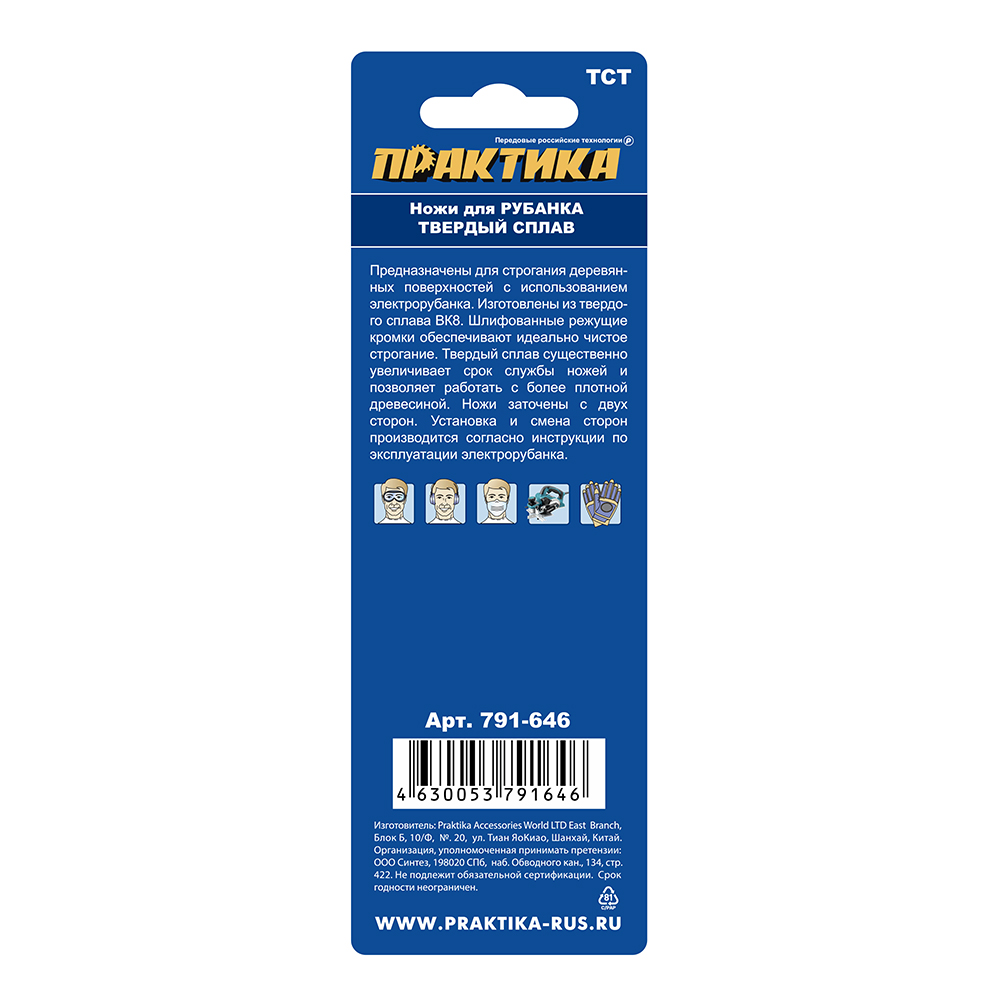 Нож для рубанка ПРАКТИКА 110 мм х 5,5 мм, твердосплавный (TCT), (2 шт) для рубанков 110 мм (791-646) - цена, фото, технические характеристики