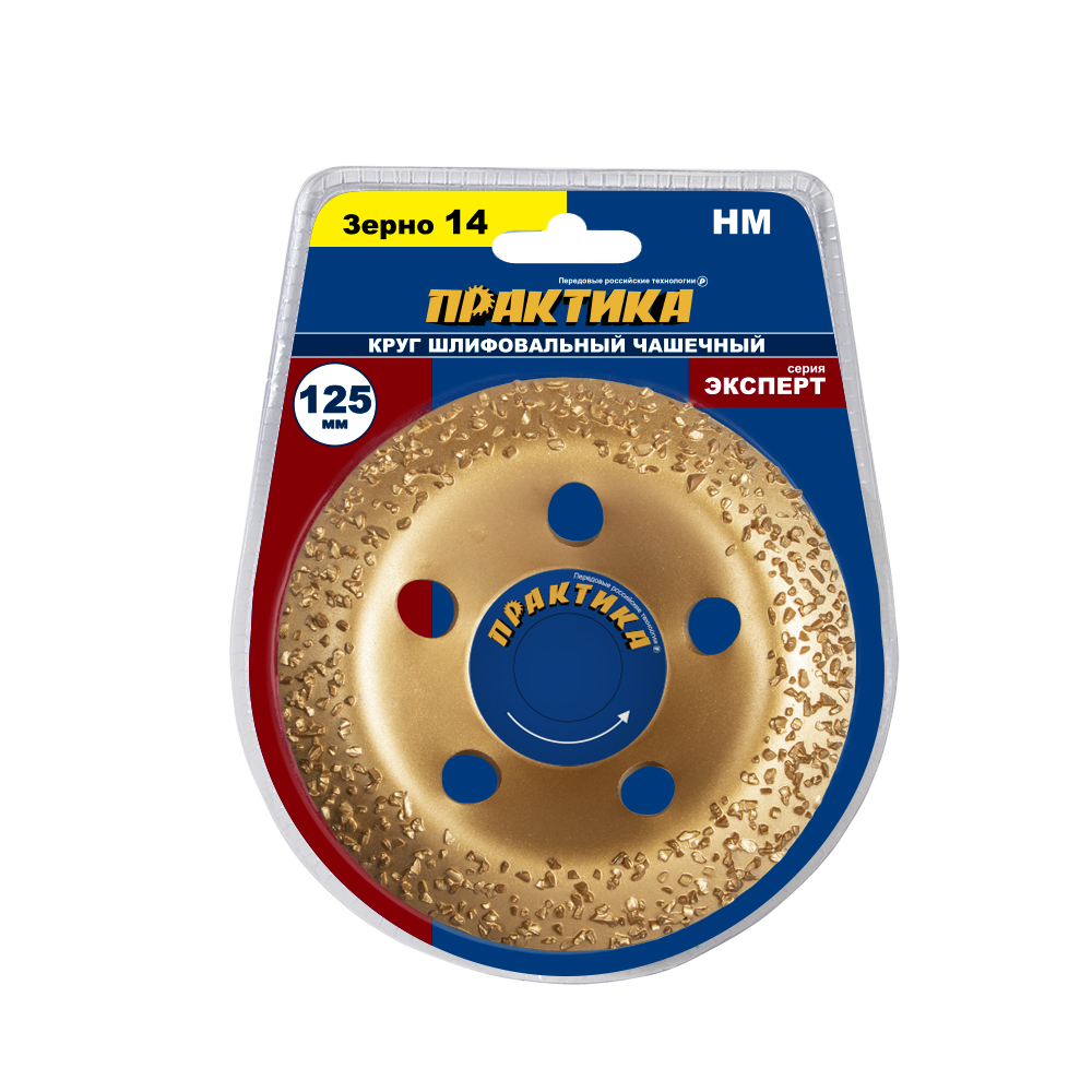 Чашка твёрдосплавная ПРАКТИКА 125 х 22 мм наклонная, зерно # 14 среднее (795-347) наклонный, зерно # 8 крупное