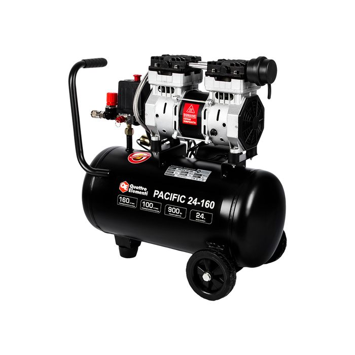 Компрессор безмасляный QUATTRO ELEMENTI PACIFIC 24-160 (160 л/мин, 24л, 900 Вт, 8 бар, 19кг, малошумный)