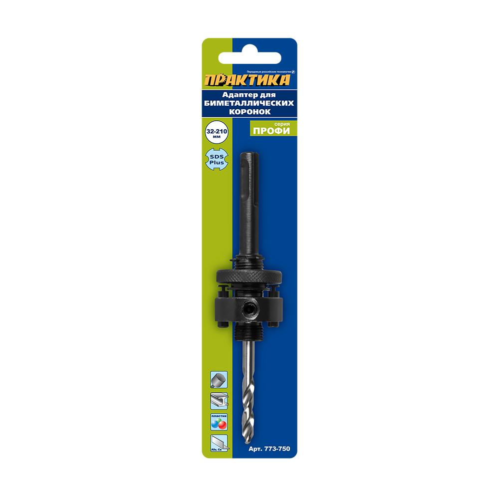 Адаптер для биметаллических коронок ПРАКТИКА 32-210мм, хвостовик SDS-plus, блистер (773-750)