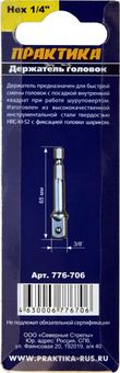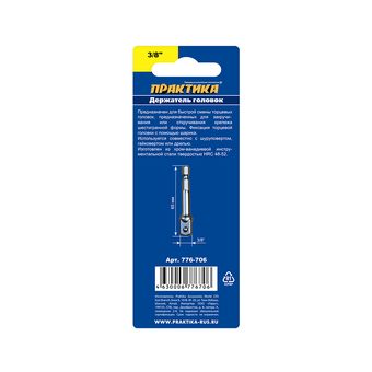 Адаптер ПРАКТИКА квадрат 3/8" для головок, длина 65 мм, хвостовик шестигранник 1/4" (776-706) - цена, фото, технические характеристики