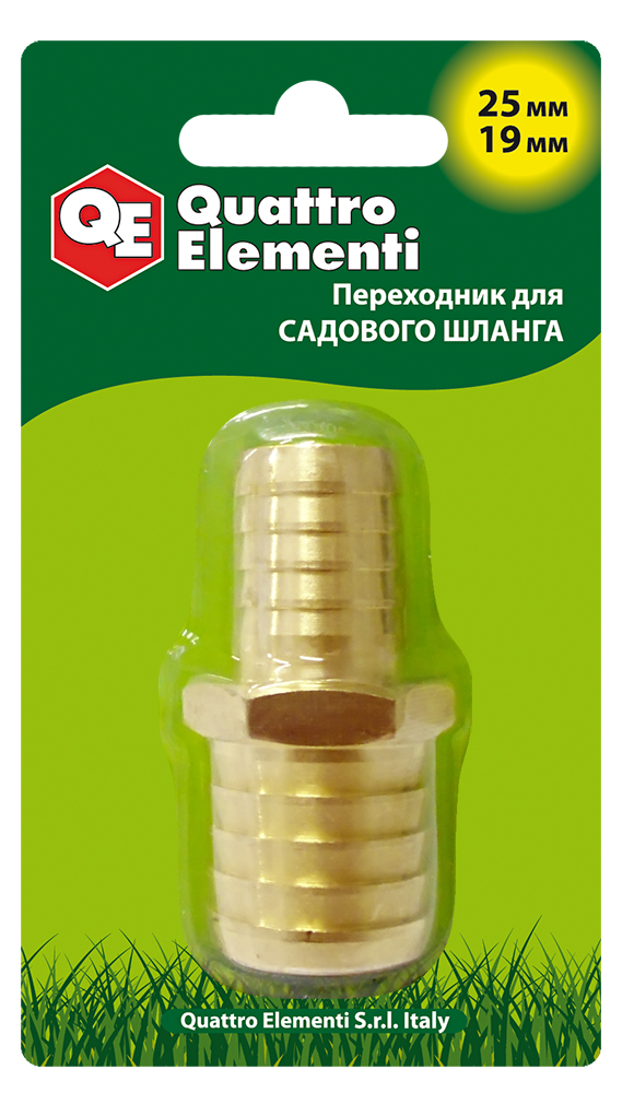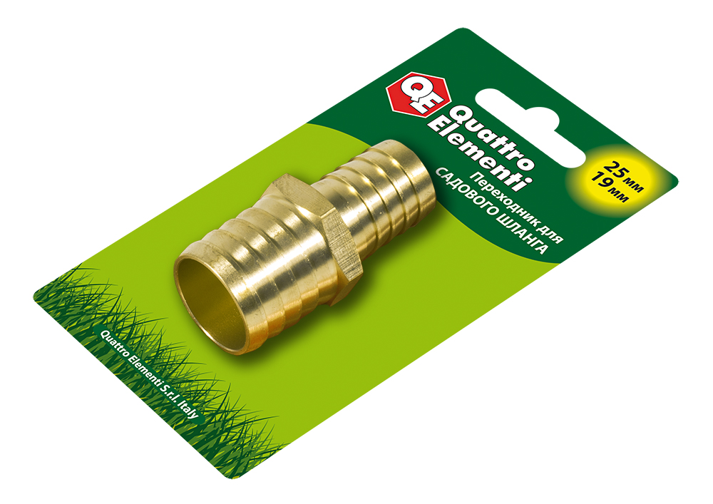 Адаптер QUATTRO ELEMENTI соединитель шлангов "ёлочка" 25 - 19 мм, латунь (771-923) - цена, фото, технические характеристики