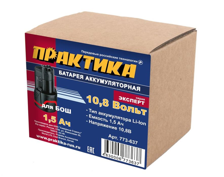 Аккумулятор для BOSCH ПРАКТИКА 10.8В, 1.5Ач, Li-Ion, коробка (773-637) - цена, фото, технические характеристики