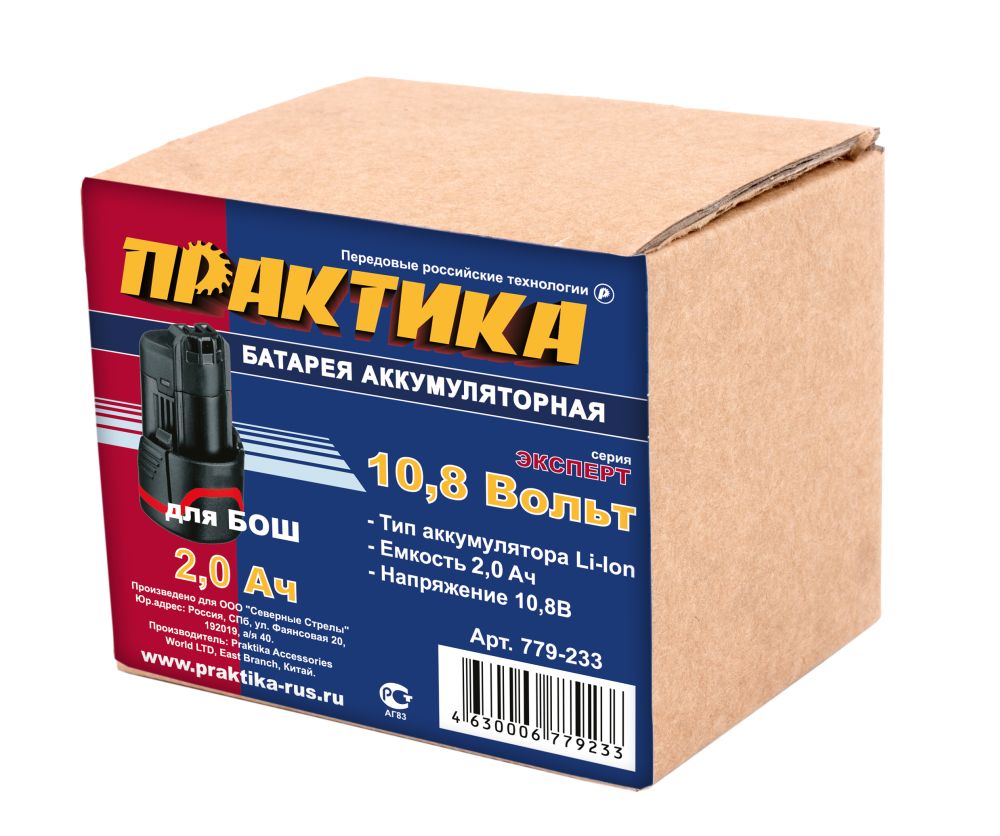 Аккумулятор для BOSCH ПРАКТИКА 10.8В, 2.0 Ач, Li-Ion, коробка (779-233) - цена, фото, технические характеристики