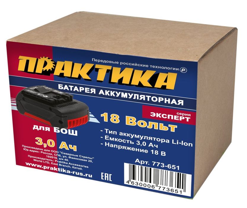 Аккумулятор для BOSCH ПРАКТИКА 18В, 3.0Ач, Li-ION, в коробке (773-651) - цена, фото, технические характеристики