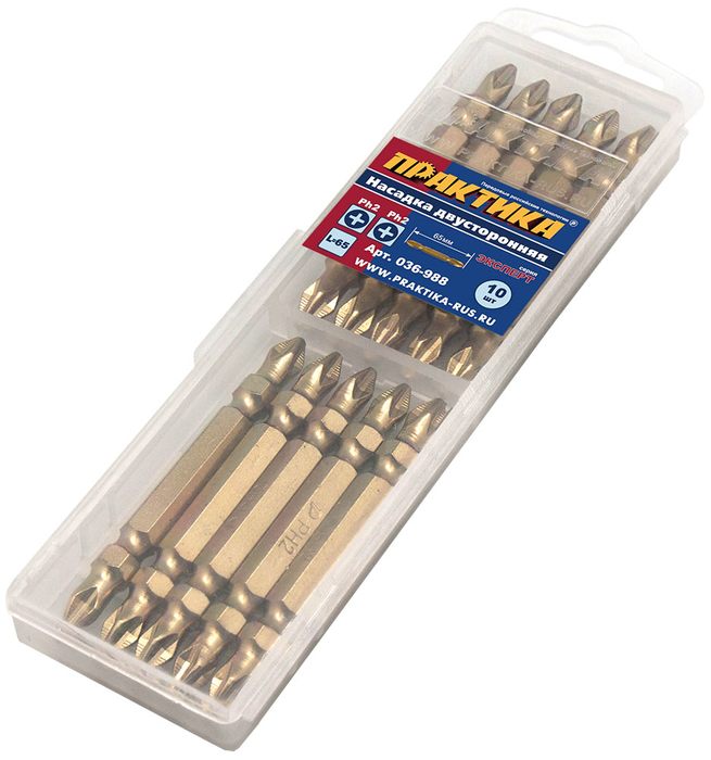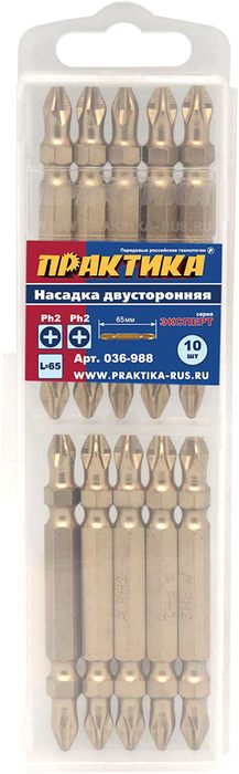 Бита отверточная ПРАКТИКА "Эксперт" двусторонняя PH-2/PH-2 х 65мм Tin (10шт (036-988) - цена, фото, технические характеристики