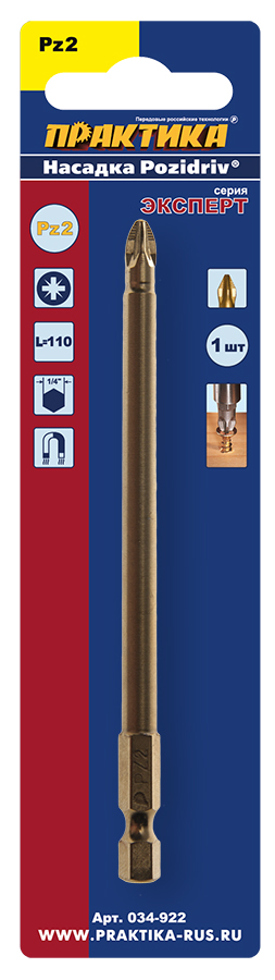Бита отверточная ПРАКТИКА "Эксперт" PZ-2 х 110мм Tin (1шт), блистер (034-922) - цена, фото, технические характеристики