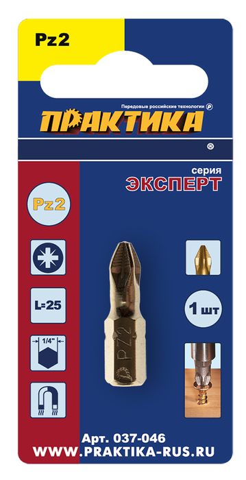 Бита отверточная ПРАКТИКА "Эксперт" PZ-2 х 25мм Tin (1шт), блистер - цена, фото, технические характеристики