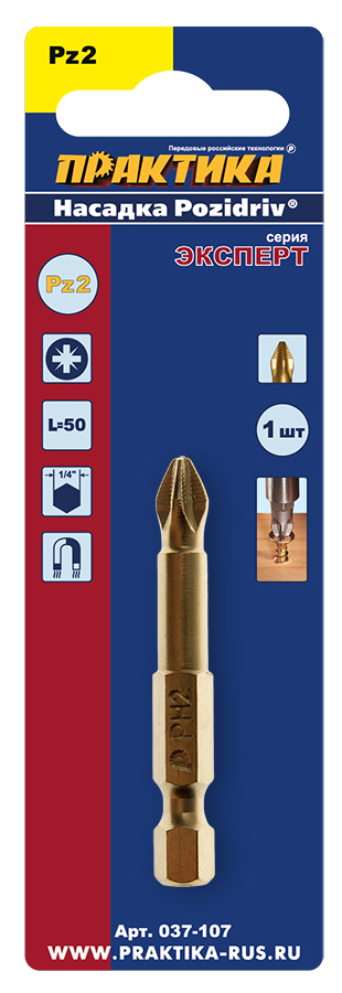 Бита отверточная ПРАКТИКА "Эксперт" PZ-2 х 50мм Tin (1 шт), блистер (037-107) (037-107)