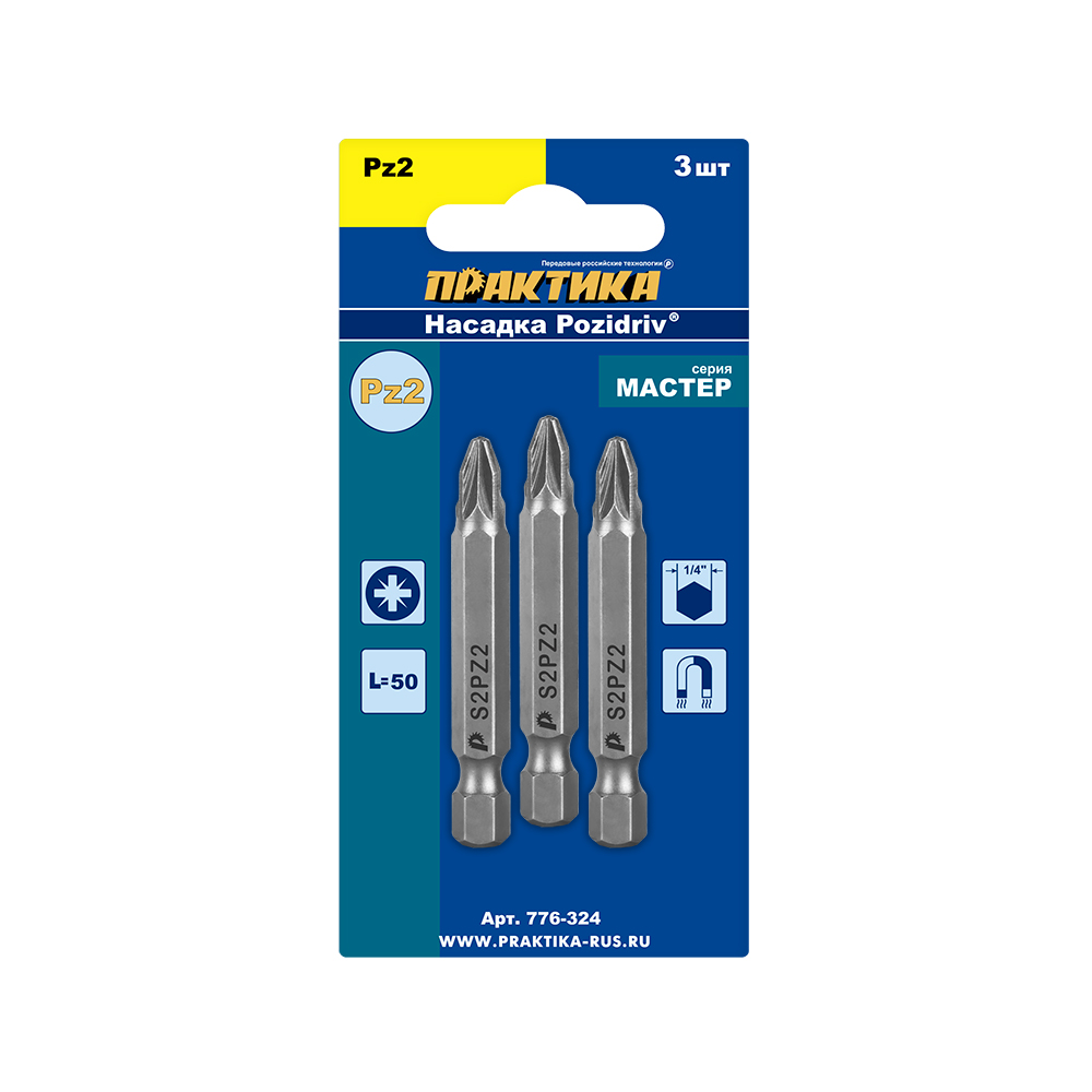 Бита отверточная ПРАКТИКА "Мастер" PZ-2 х 50мм (3шт), блистер - цена, фото, технические характеристики