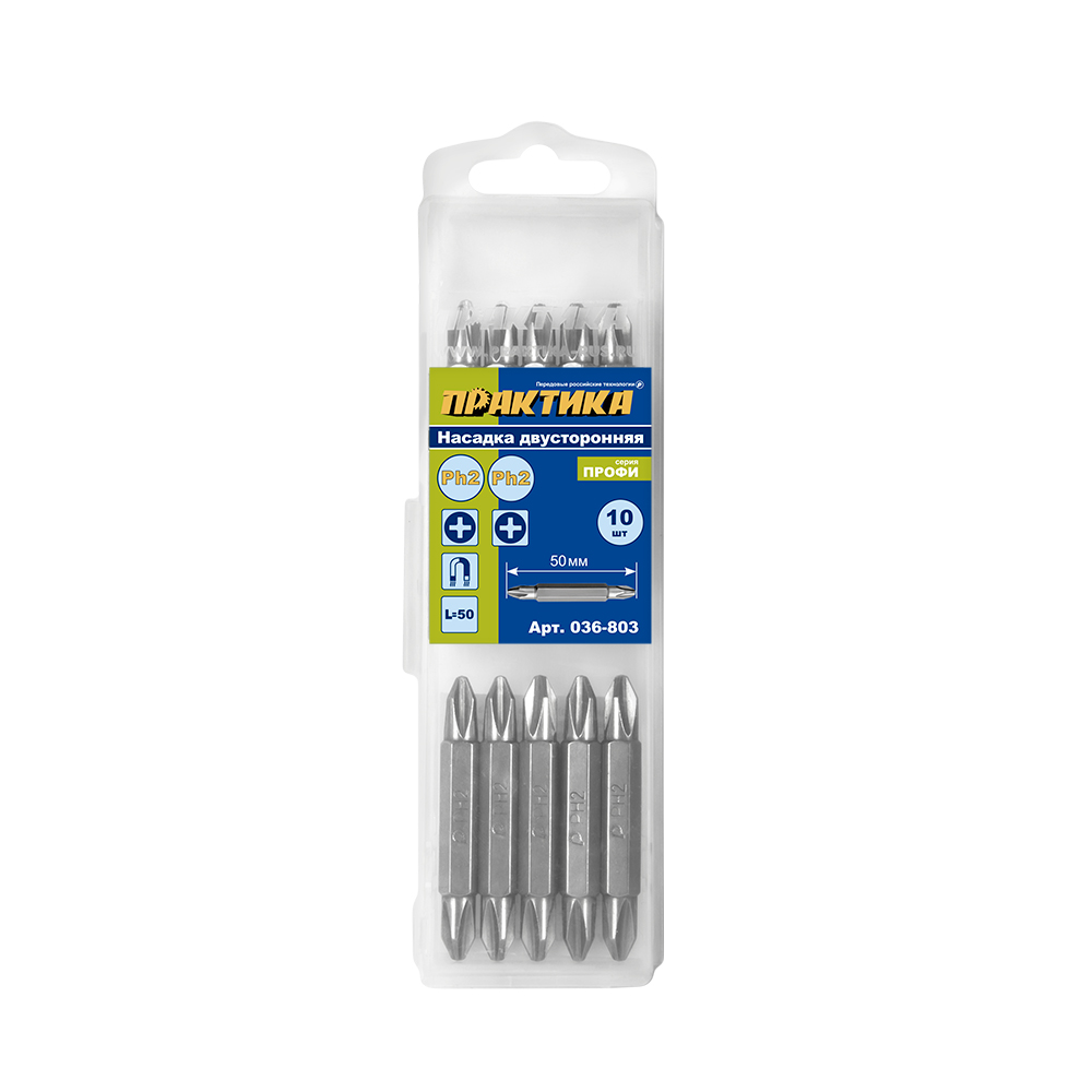 Бита отверточная ПРАКТИКА "Профи" двусторонняя PH-2 / PH-2 х 50мм (10шт), - цена, фото, технические характеристики