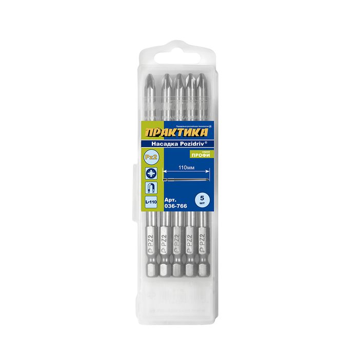 Бита отверточная ПРАКТИКА "Профи" PZ-2 х 110мм (5шт), кассета - цена, фото, технические характеристики