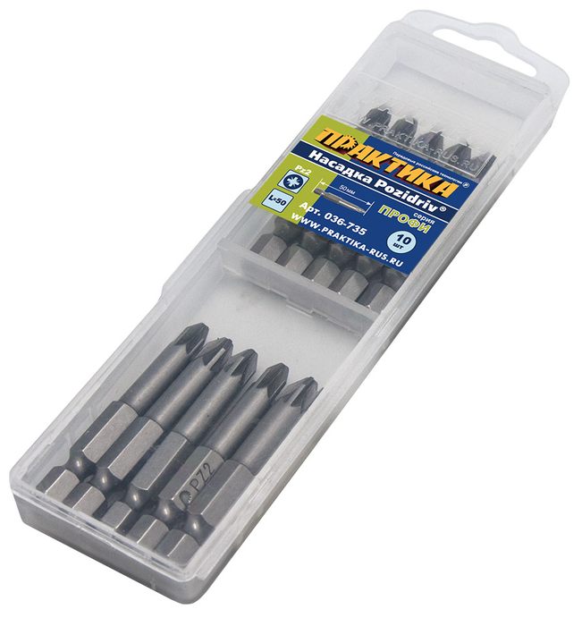 Бита отверточная ПРАКТИКА "Профи" PZ-2 х 50мм (10шт), кассета - цена, фото, технические характеристики