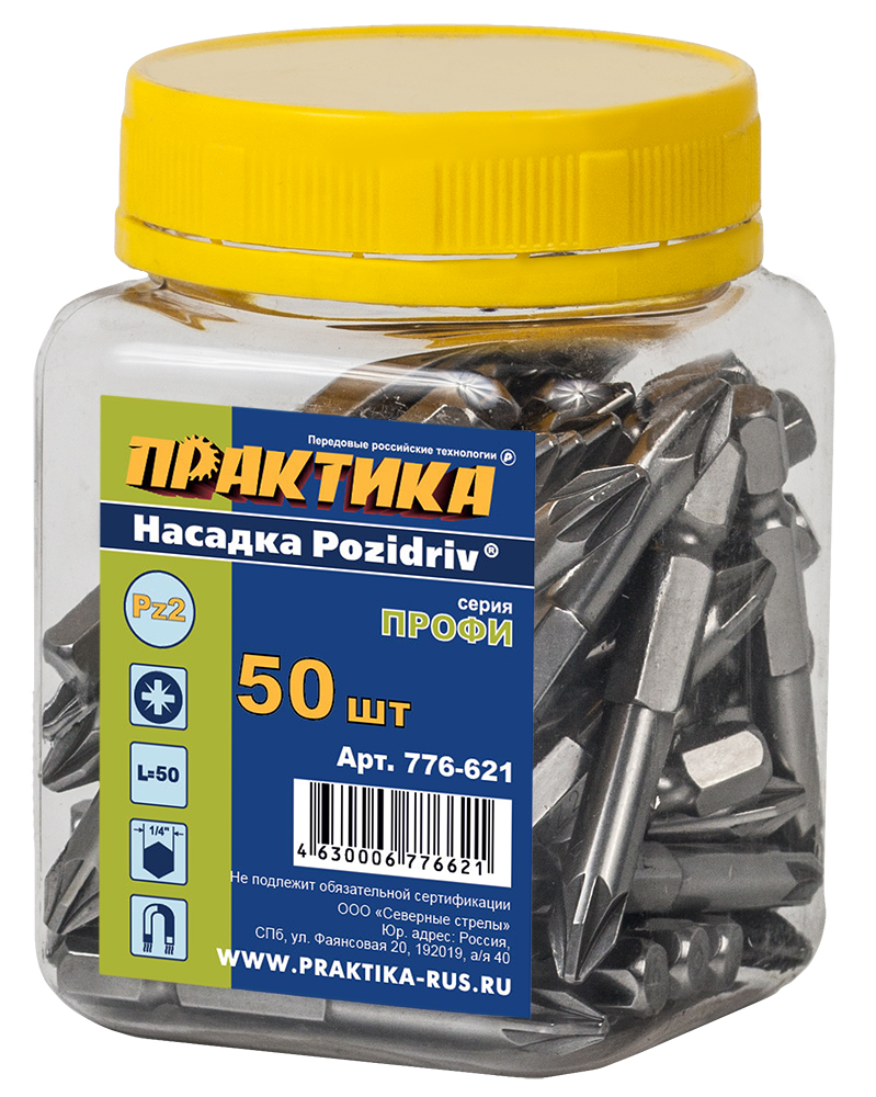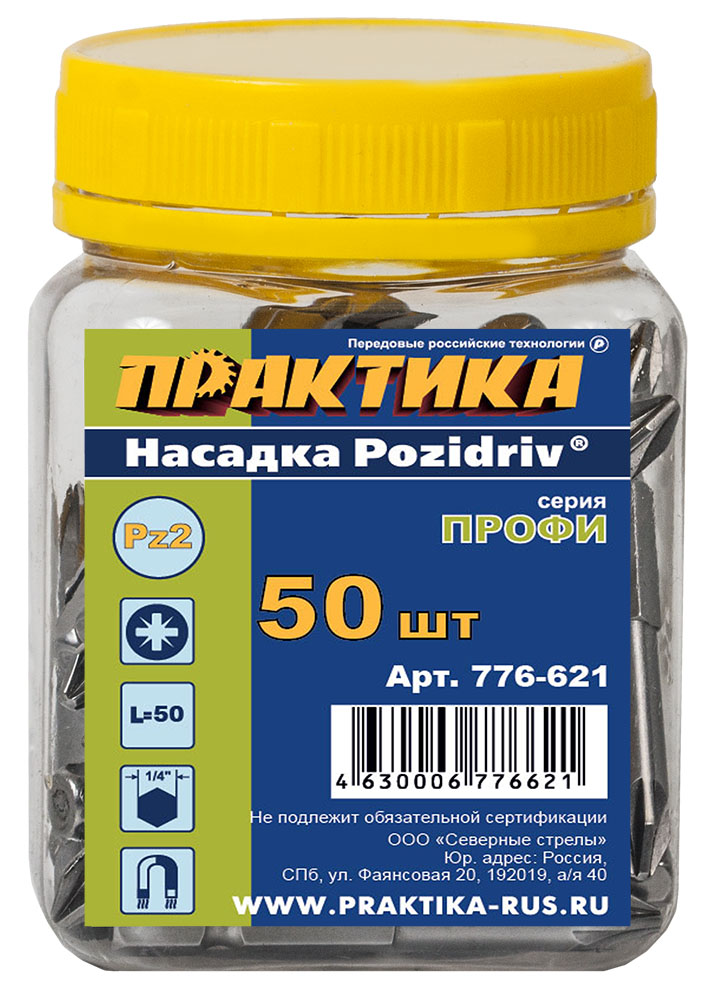 Бита отверточная ПРАКТИКА "Профи" PZ-2 х 50мм (50шт), банка - цена, фото, технические характеристики