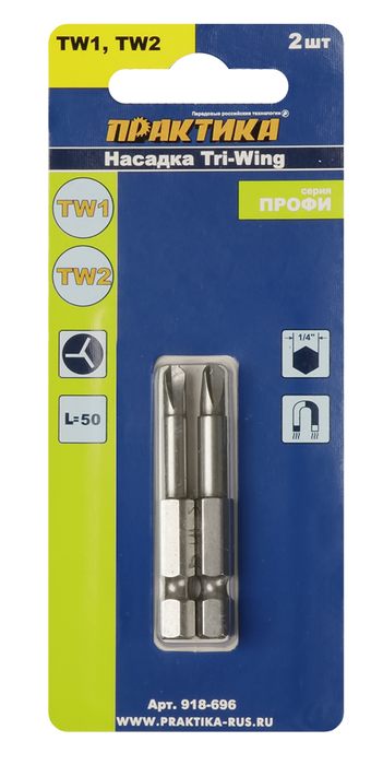 Бита отверточная ПРАКТИКА "Профи" Tri Wing 1x50мм, 2x50мм (2шт), блистер (918-696) - цена, фото, технические характеристики