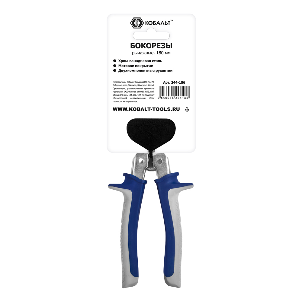 Бокорезы КОБАЛЬТ рычажные, 180 мм, 2-х компонентные рукоятки, CR-V, подвес (244-186) - цена, фото, технические характеристики