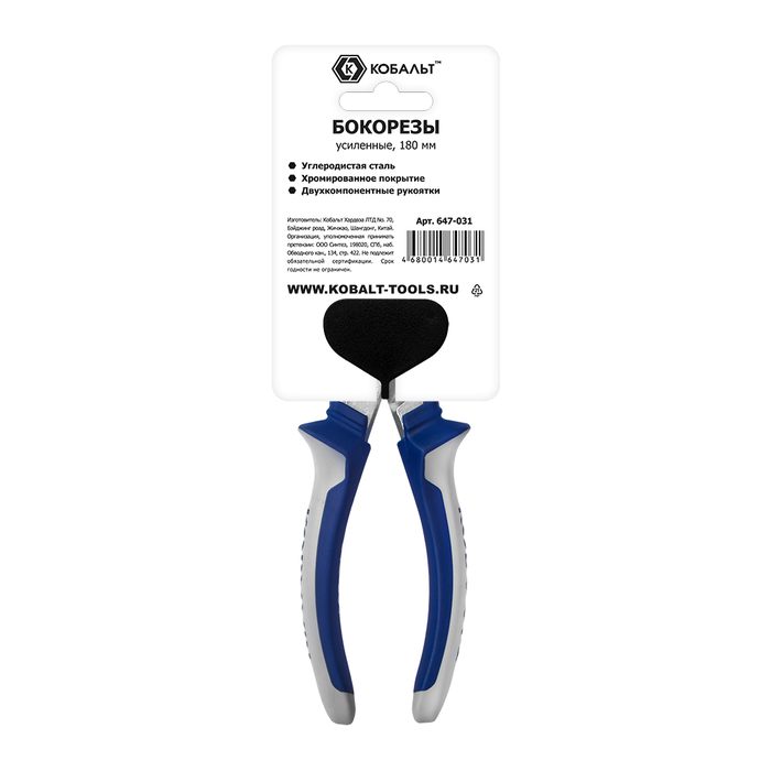 Бокорезы КОБАЛЬТ 180 мм, 2-х компонентные рукоятки, HCS, подвес (647-031) - цена, фото, технические характеристики