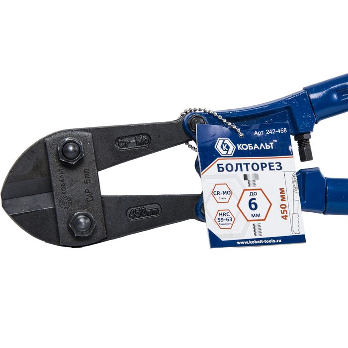 Болторез КОБАЛЬТ 450 мм, лезвия CR-MO, максимальный диаметр реза до 6 мм (242-458) - цена, фото, технические характеристики