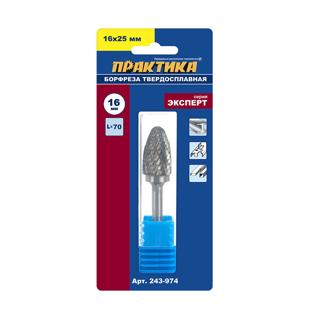 Борфреза твердосплавная ПРАКТИКА тип F параболическая,16 х 25 мм, хвостовик 6 мм (243-974) - цена, фото, технические характеристики