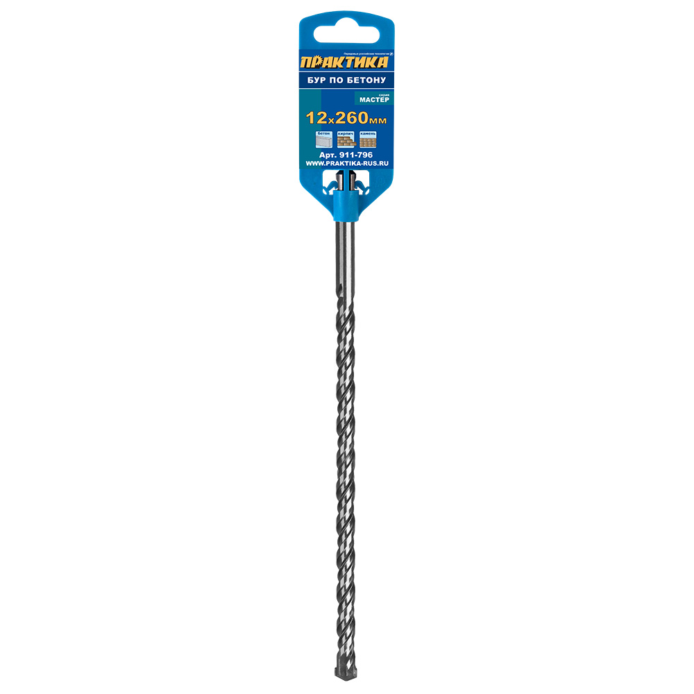 Бур SDS-plus ПРАКТИКА 12 х 200/260 мм серия "Мастер" по бетону (911-796) 12 х 200/260 мм серия "Мастер" по бетону