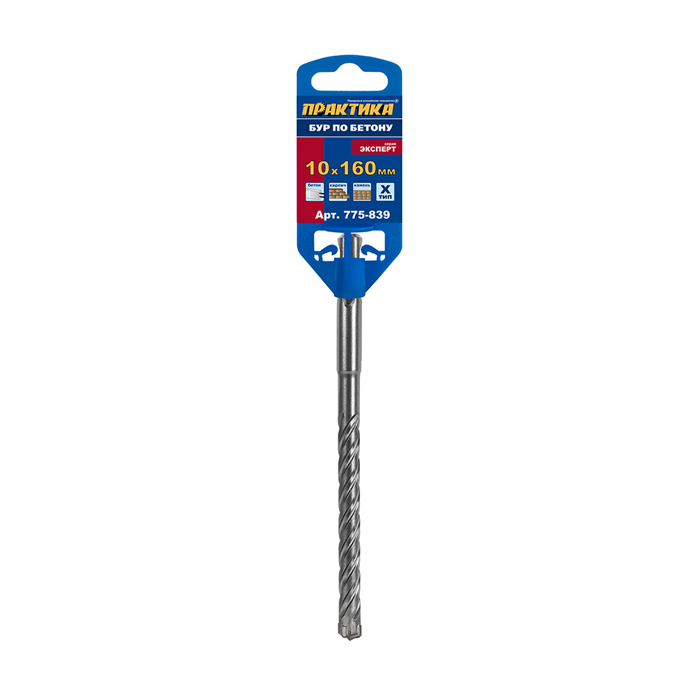 Бур SDS-plus ПРАКТИКА 10 х 100/160 мм, Х-тип серия "Эксперт" по бетону (775-839) - цена, фото, технические характеристики