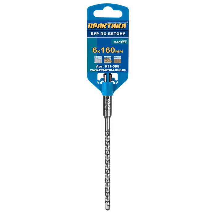 Бур SDS-plus ПРАКТИКА 6 х 100/160 мм серия "Мастер" по бетону (911-598) - цена, фото, технические характеристики