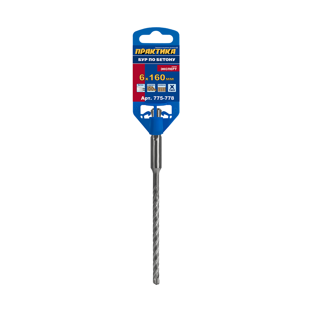 Бур SDS-plus ПРАКТИКА 6 х 100/160 мм, Х-тип серия "Эксперт" по бетону (775-778) - цена, фото, технические характеристики