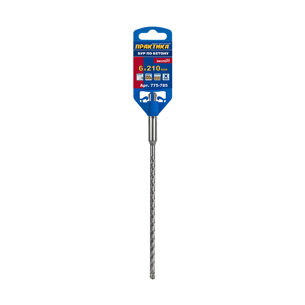 Бур SDS-plus ПРАКТИКА 6 х 150/210 мм, Х-тип серия "Эксперт" по бетону (775-785) - цена, фото, технические характеристики