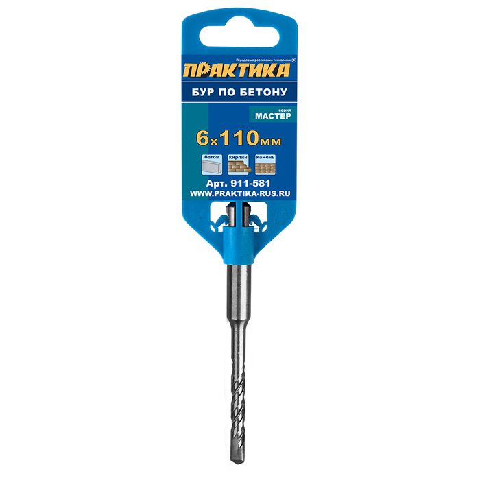 Бур SDS-plus ПРАКТИКА 6 х 50/110 мм серия "Мастер" по бетону (911-581) - цена, фото, технические характеристики