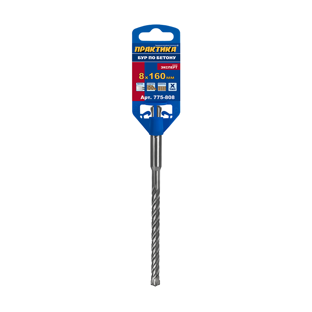 Бур SDS-plus ПРАКТИКА 8 х 100/160 мм, Х-тип серия "Эксперт" по бетону (775-808) - цена, фото, технические характеристики
