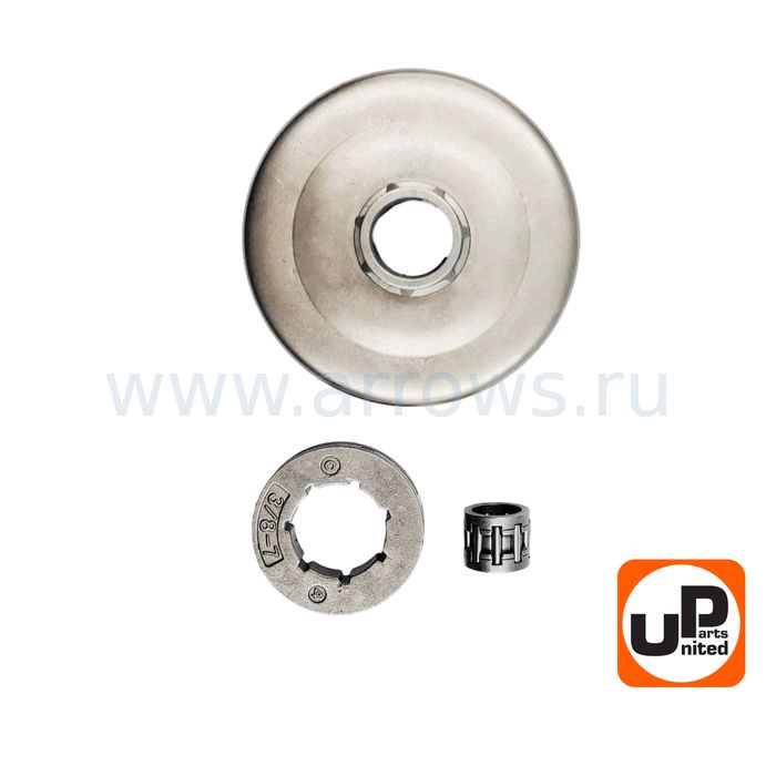 Чашка сцепления UNITED PARTS 3/8"-7 для HUSQVARNA 235/236/240, PART 350/351 с подшипником (аналог 5300470-61, Oregon 106114) - цена, фото, технические характеристики