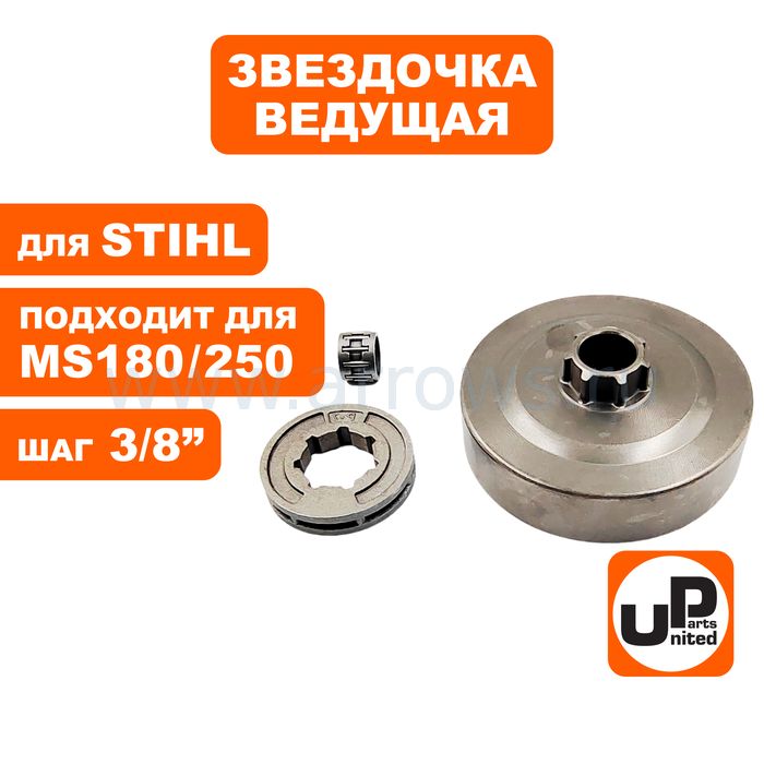 Чашка сцепления UNITED PARTS 3/8"-7 для STIHL MS180/210/230/250 с подшипником (аналог 11230071025, 11230071030) - цена, фото, технические характеристики