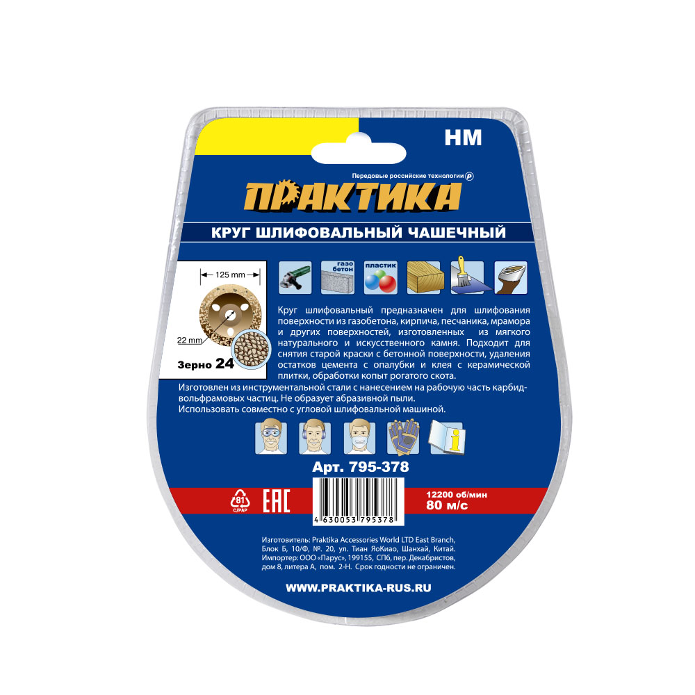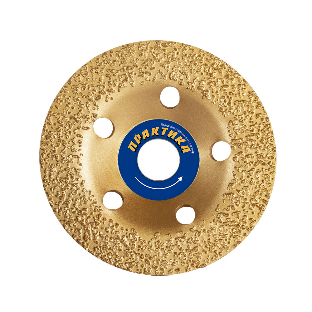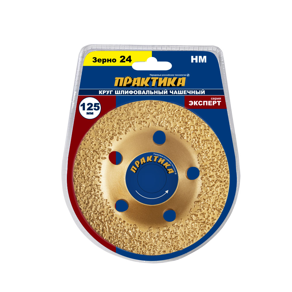Чашка твёрдосплавная ПРАКТИКА 125 х 22 мм плоская, зерно # 24 мелкое (795-378) наклонный, зерно # 8 крупное