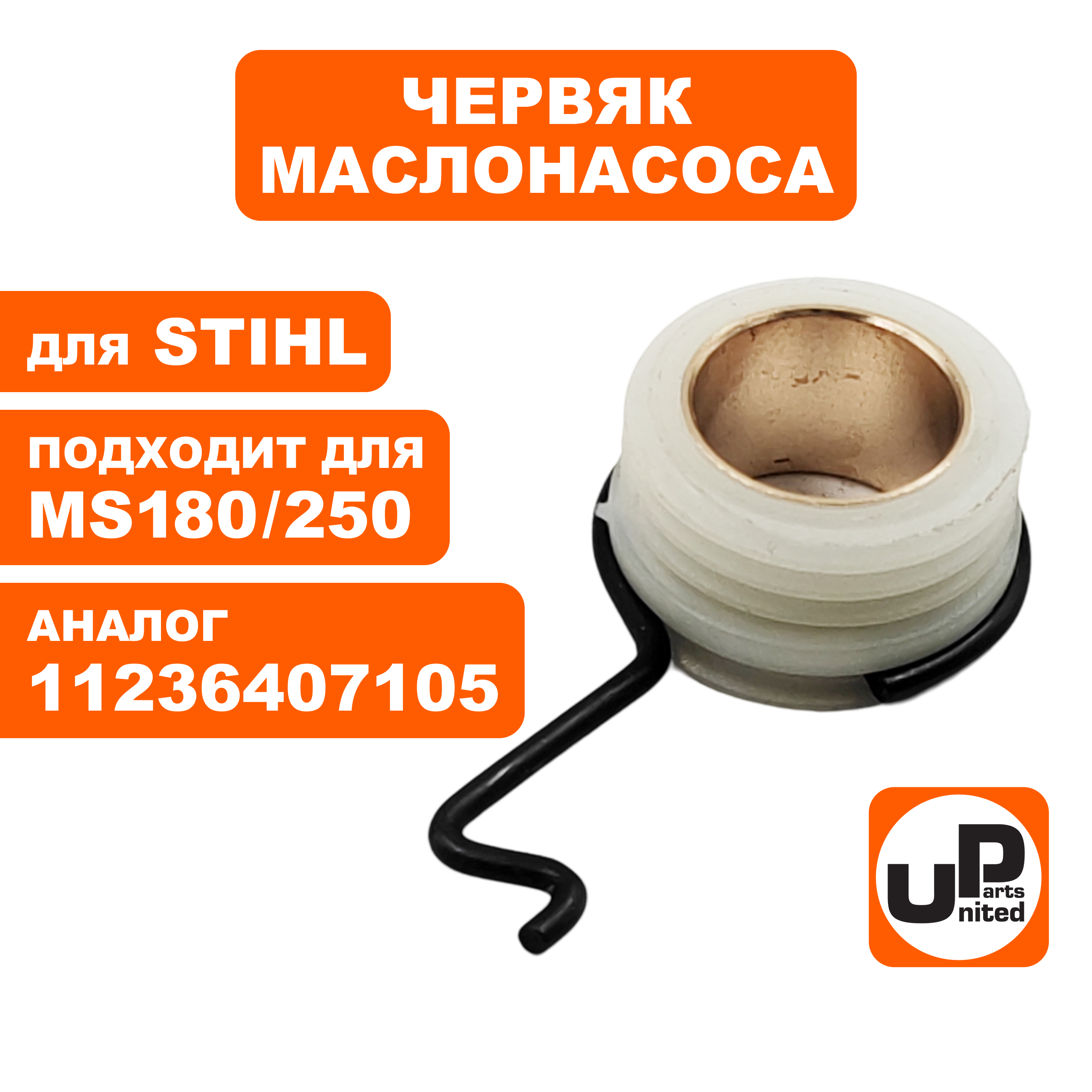 Червяк маслонасоса UNITED PARTS для STIHL MS180/023/025/MS250 с поводком (аналог 11236407102) (аналог 11236407102)
