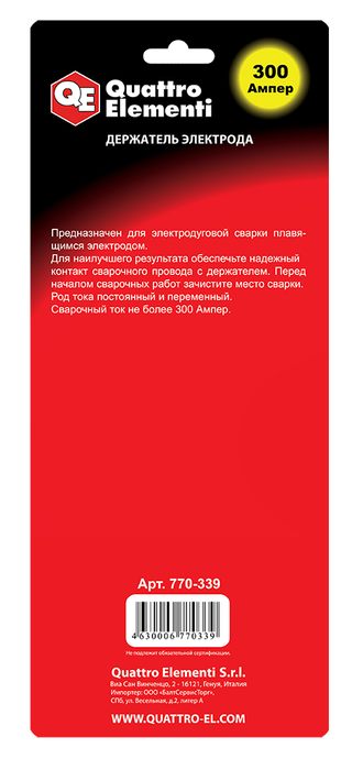Держатель электрода QUATTRO ELEMENTI 300 А, профи, блистер (770-339) - цена, фото, технические характеристики