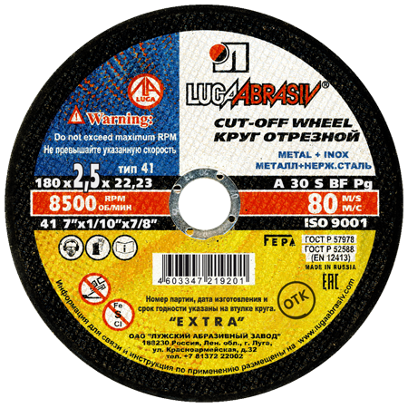 Диск абразивный отрезной по металлу Луга-Абразив Extra 180 x 2.5 x 22мм +нерж. (100/25шт) - цена, фото, технические характеристики