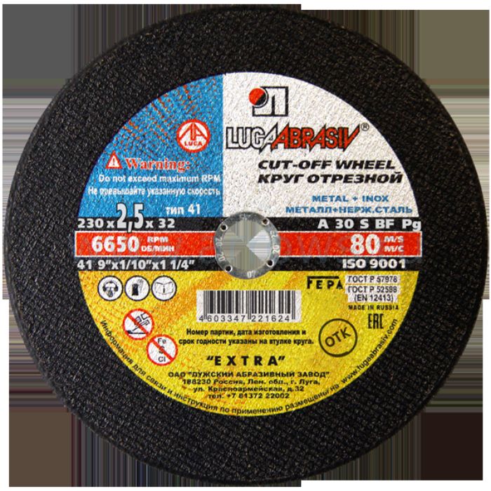 Диск абразивный отрезной по металлу Луга-Абразив Extra 230 x 2.5 x 32 мм +нерж. (50/25шт.) - цена, фото, технические характеристики