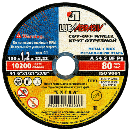 Диск абразивный отрезной по металлу Луга-Абразив Extra 150 x 1.2 x 22мм + нерж. (200/25шт.) - цена, фото, технические характеристики